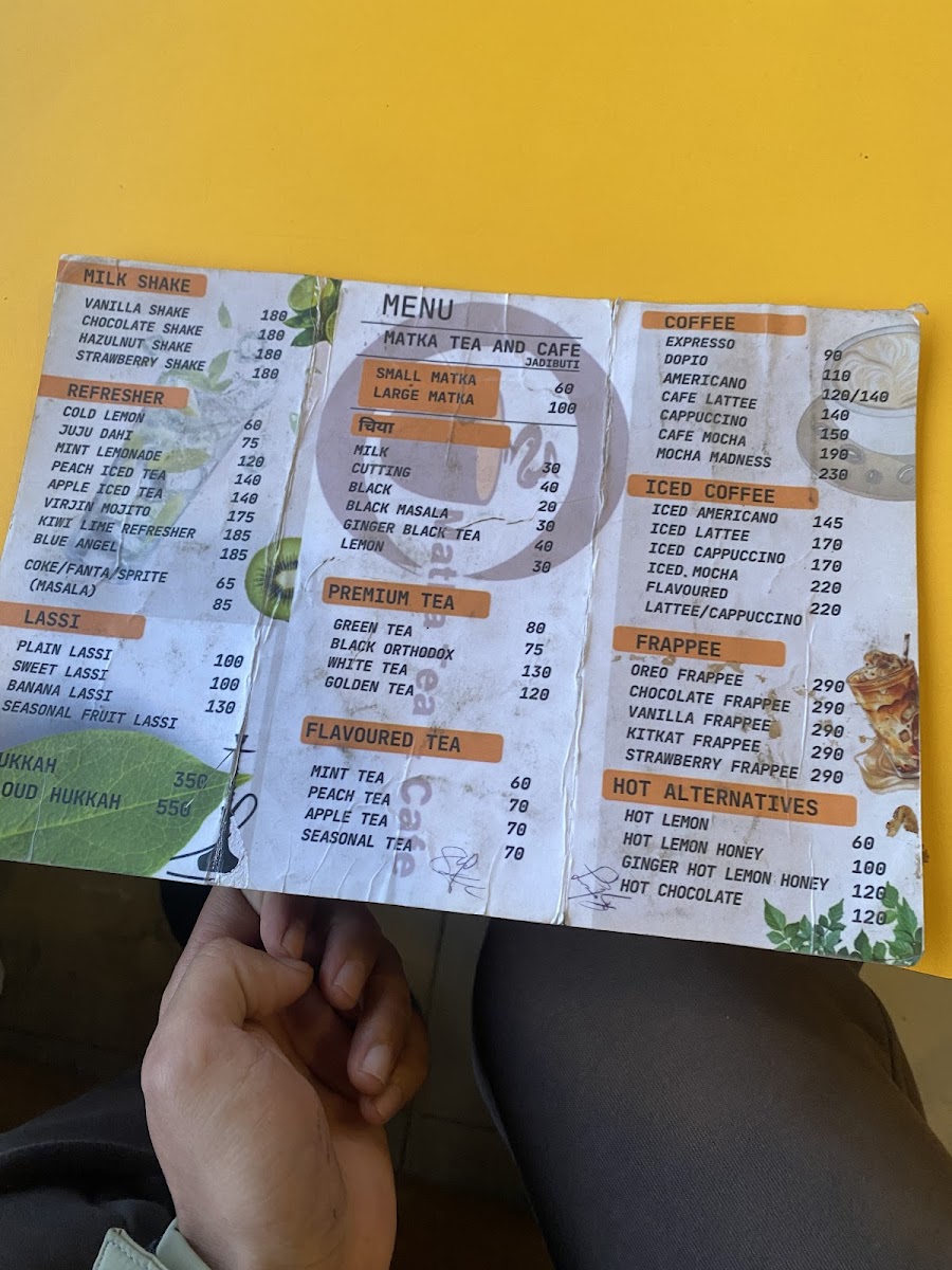 Matka tea and cafe. Jadibuti Menu